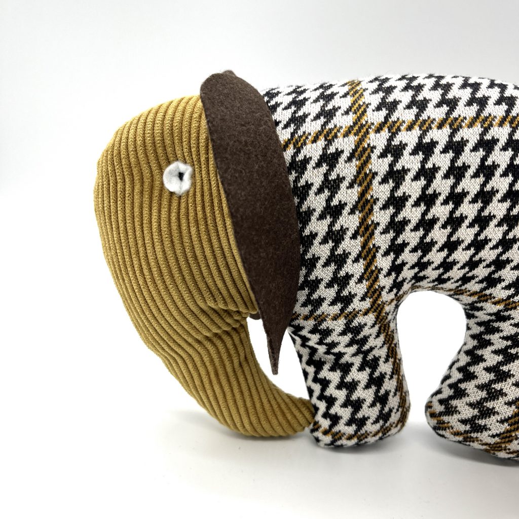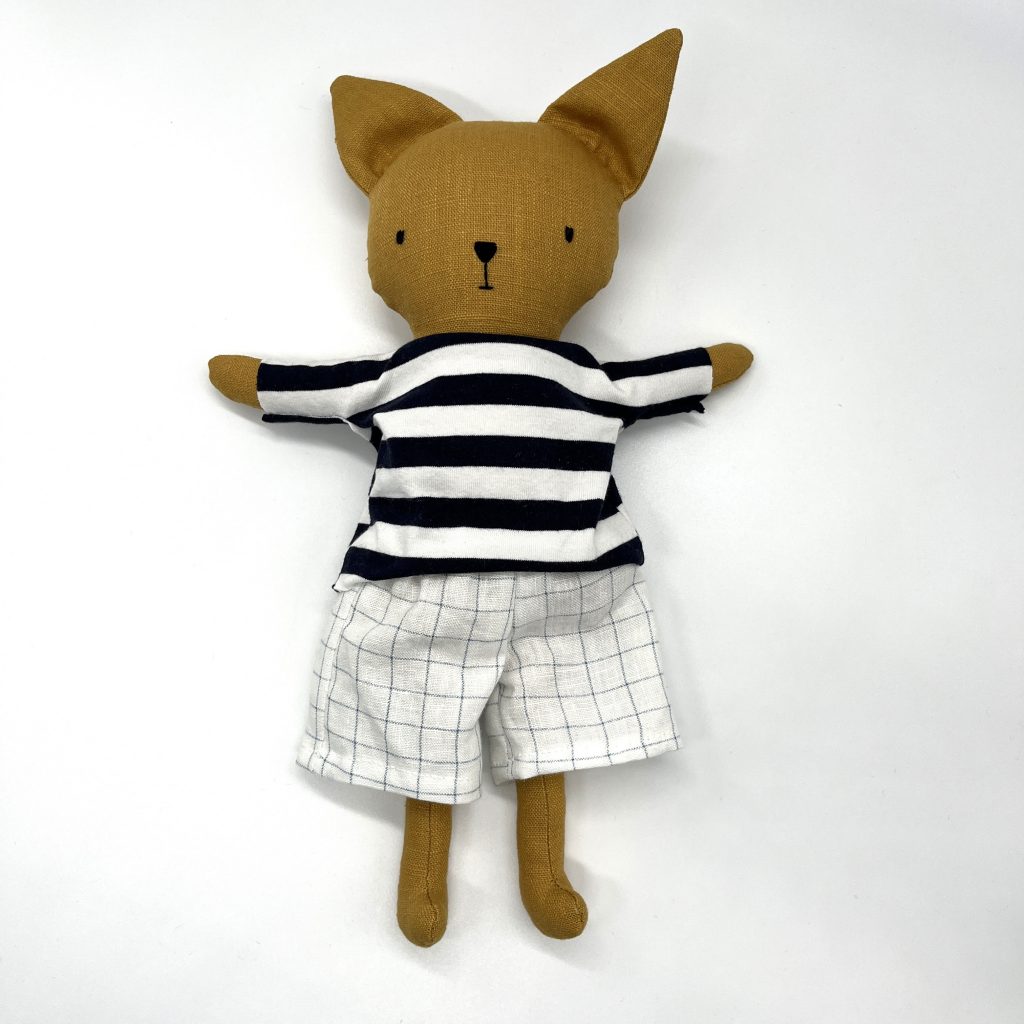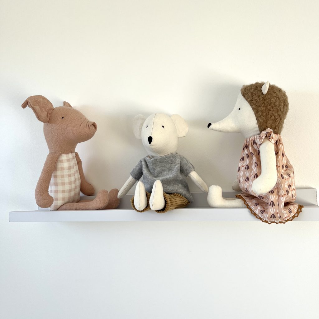Je confectionne des petites bestioles dans des tissus qui murmurent des histoires : draps métis anciens, étoffes neuves soigneusement choisies.